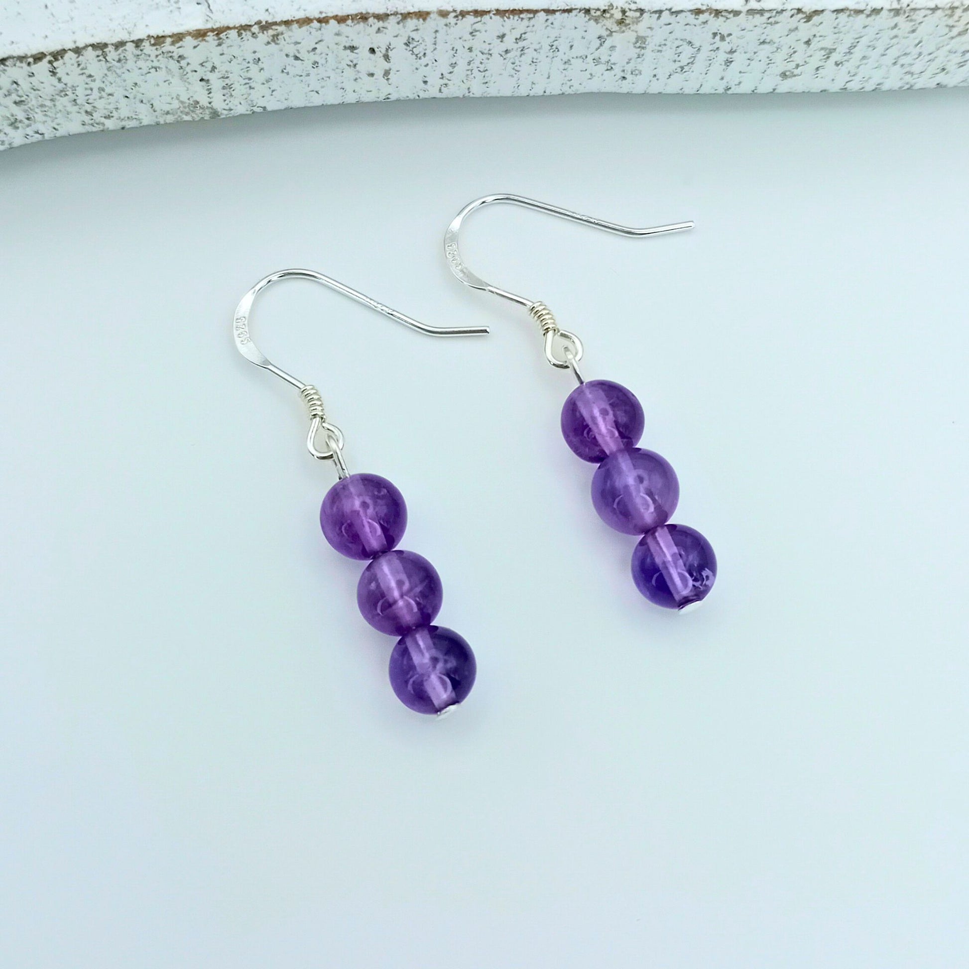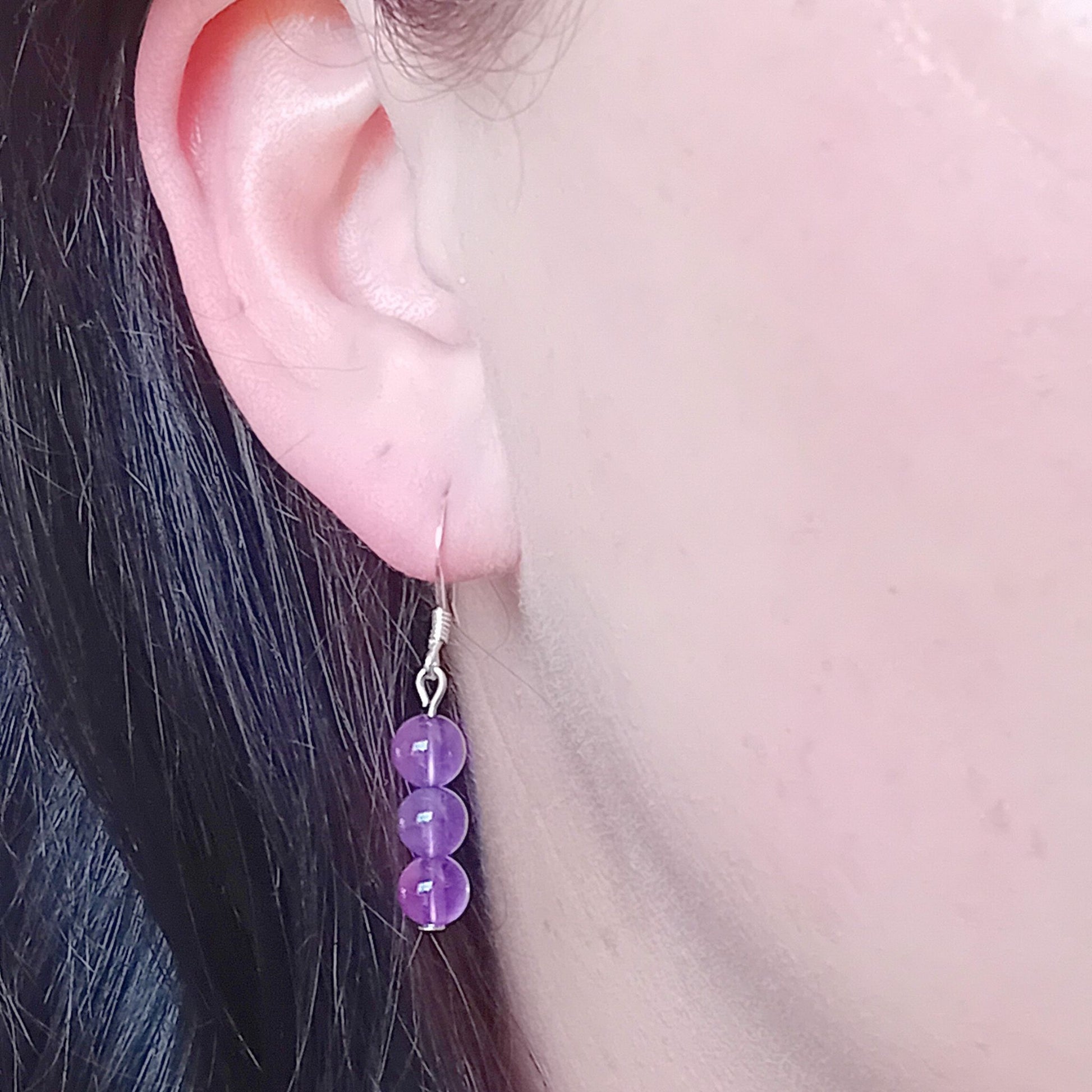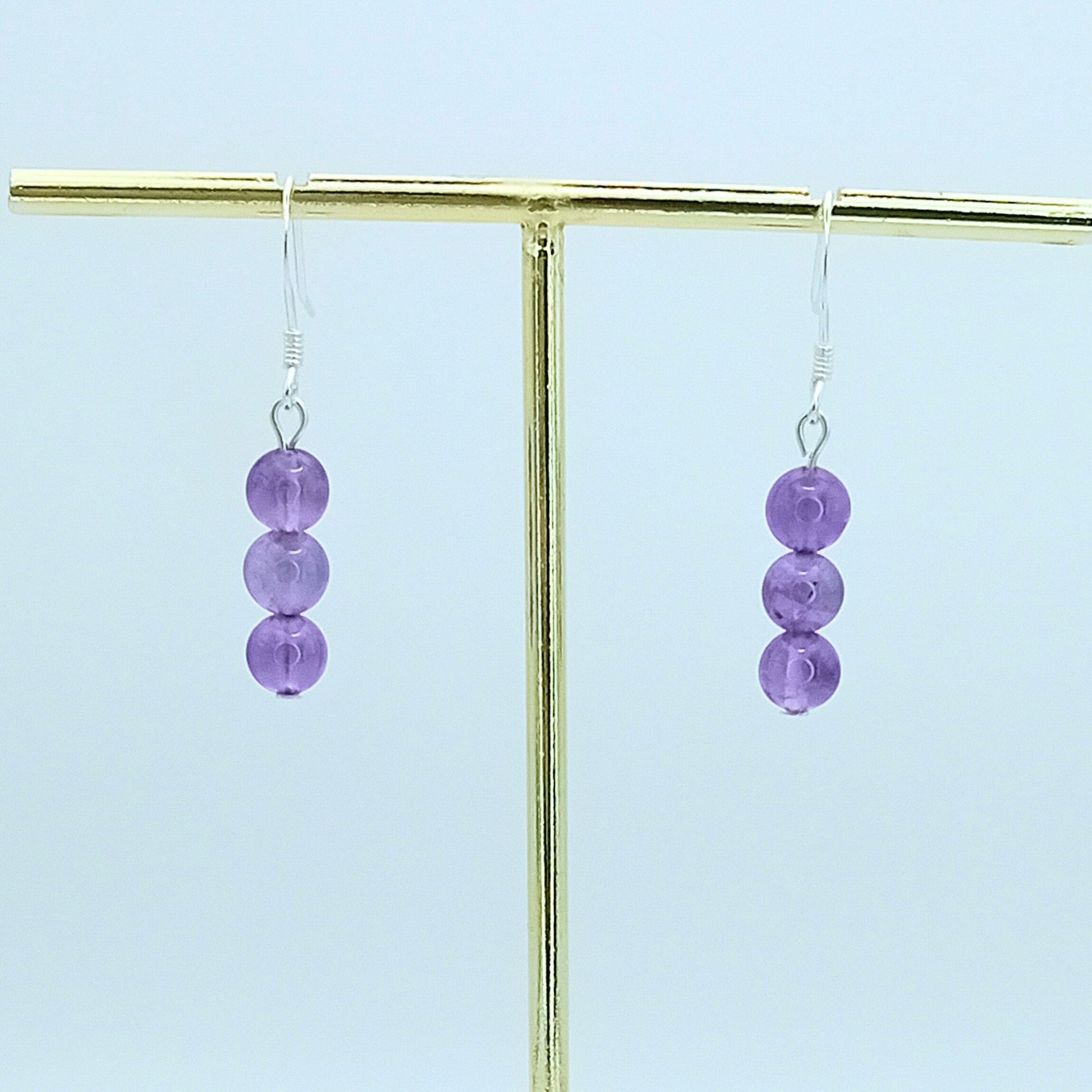 Simple and pretty, these handmade earrings feature three smooth light amethyst beads that catch the light just right. The soft purple tones pair perfectly with the cool shine of sterling silver, making them an easy favourite for everyday wear.