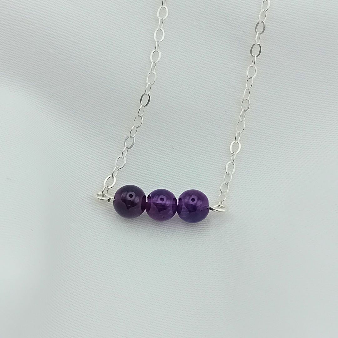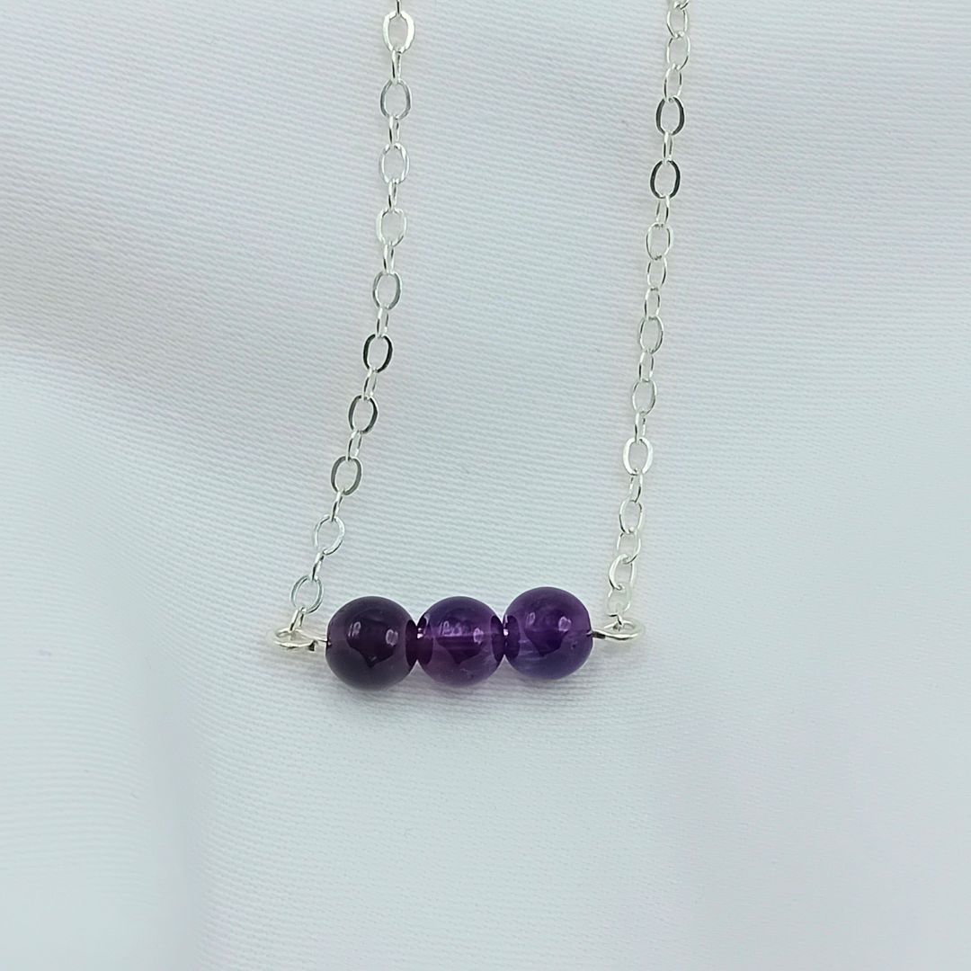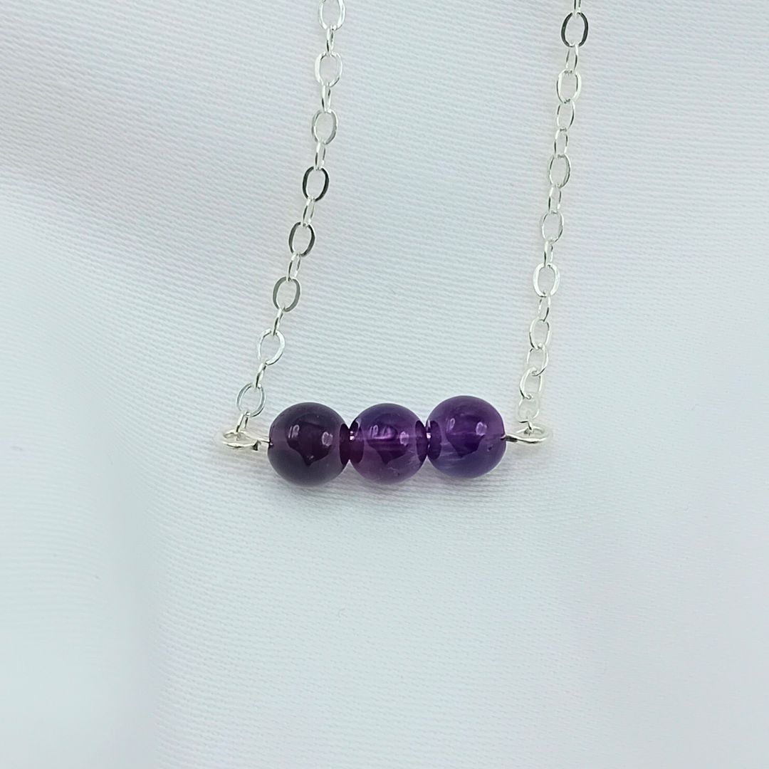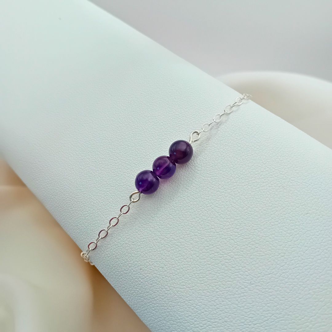 A dainty sterling silver bracelet handcrafted using amethyst gemstones carefully chosen for their deep purple hue and natural sparkle. The rich color of these amethysts beautifully contrasts with the sparkly sterling silver chain.