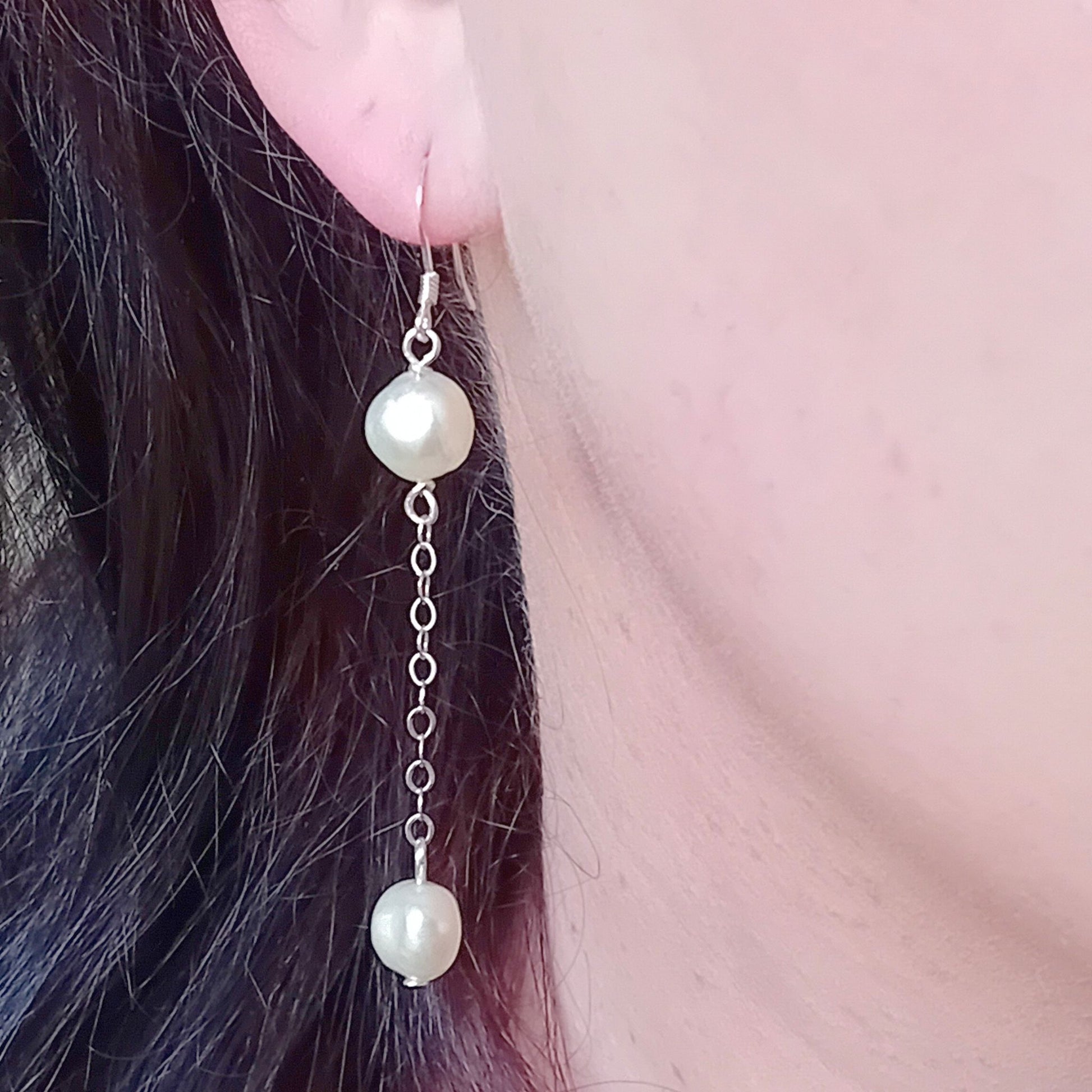 These handmade silver earrings feature genuine freshwater pearls delicately linked with a fine sterling silver chain. Lightweight and versatile, they’re perfect for both everyday wear and special occasions. A beautiful choice for brides-to-be.