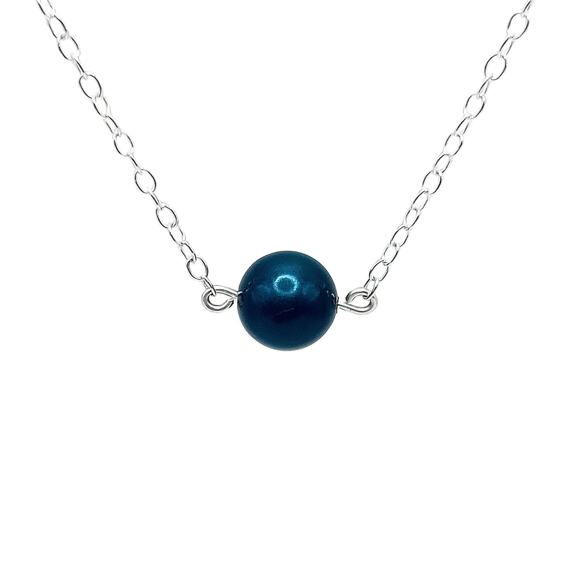 This Swarovski pearl necklace showcases a striking deep petrol blue pearl set on a gorgeous sterling silver link chain. A minimalist design, this piece stands out beautifully on its own, or pair with our other Pearl designs.
