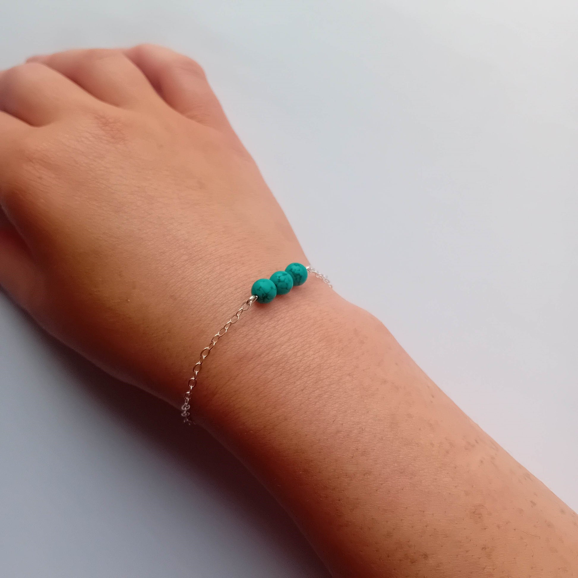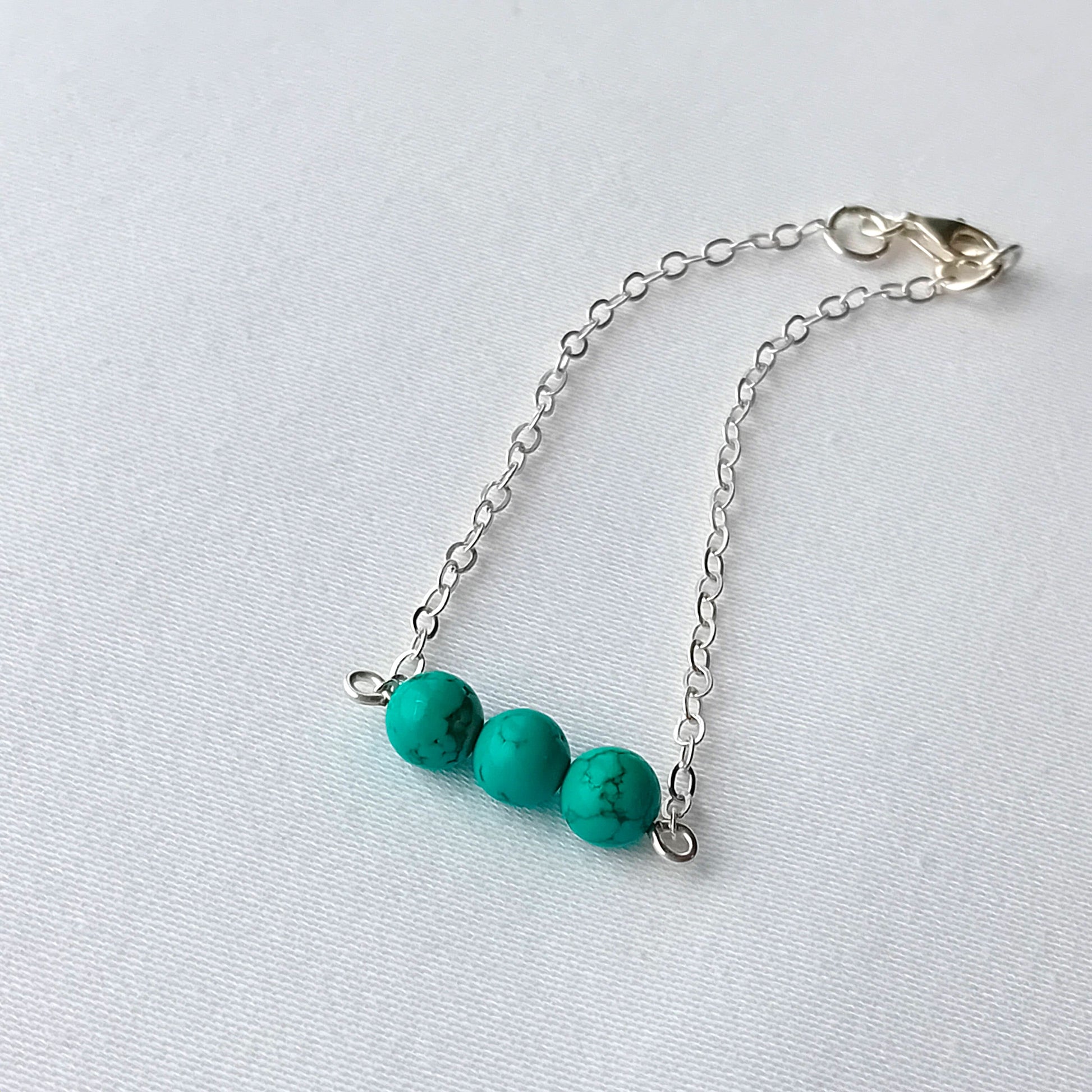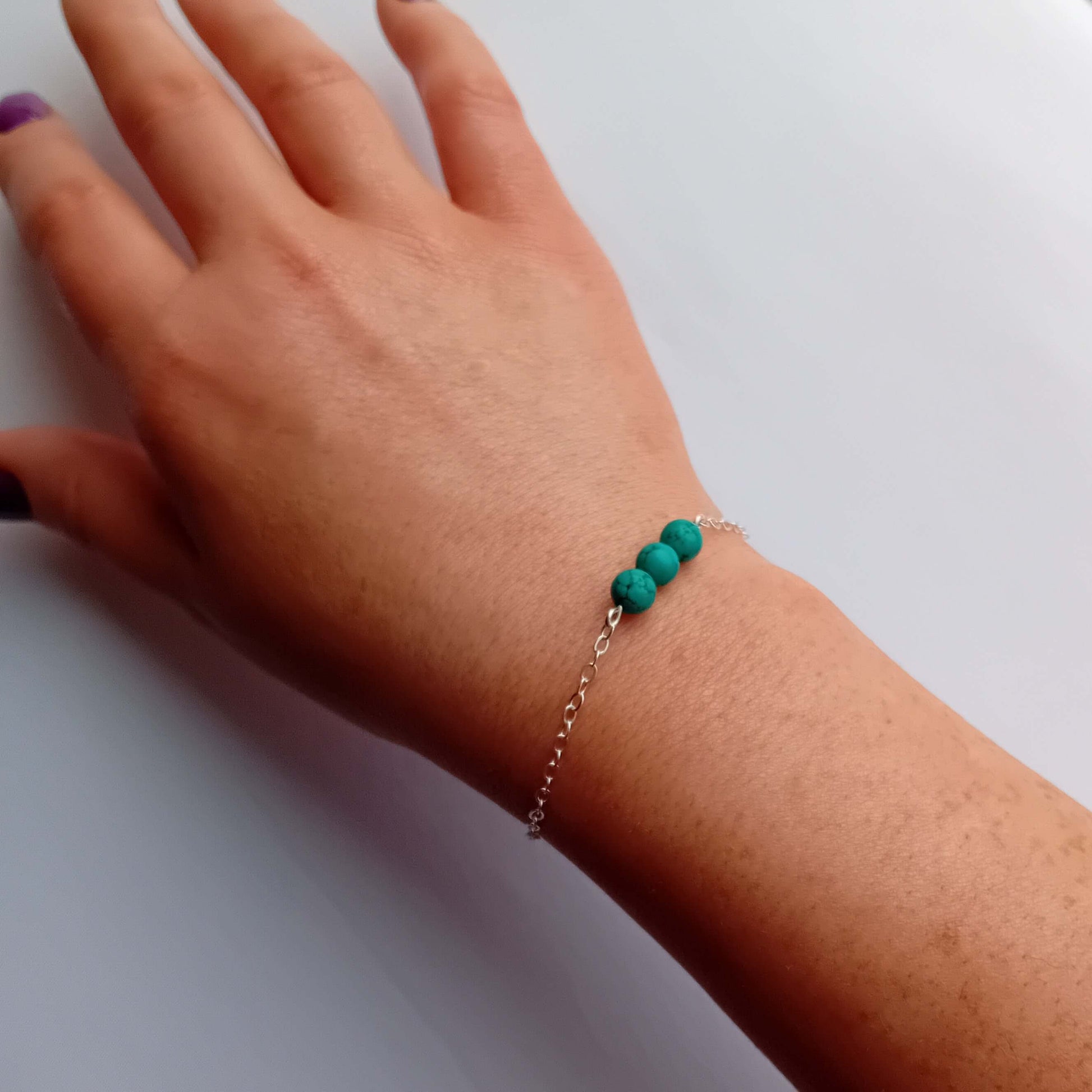 This handmade Turquoise Trio bracelet features three polished turquoise stones, each radiating natural vibrancy. We love the striking contrast of the vivid turquoise against the silver for adding a pop of colour to your look, and the minimalist design ensures it goes effortlessly with any outfit. Lightweight and versatile, it’s perfect for both everyday wear and special occasions.